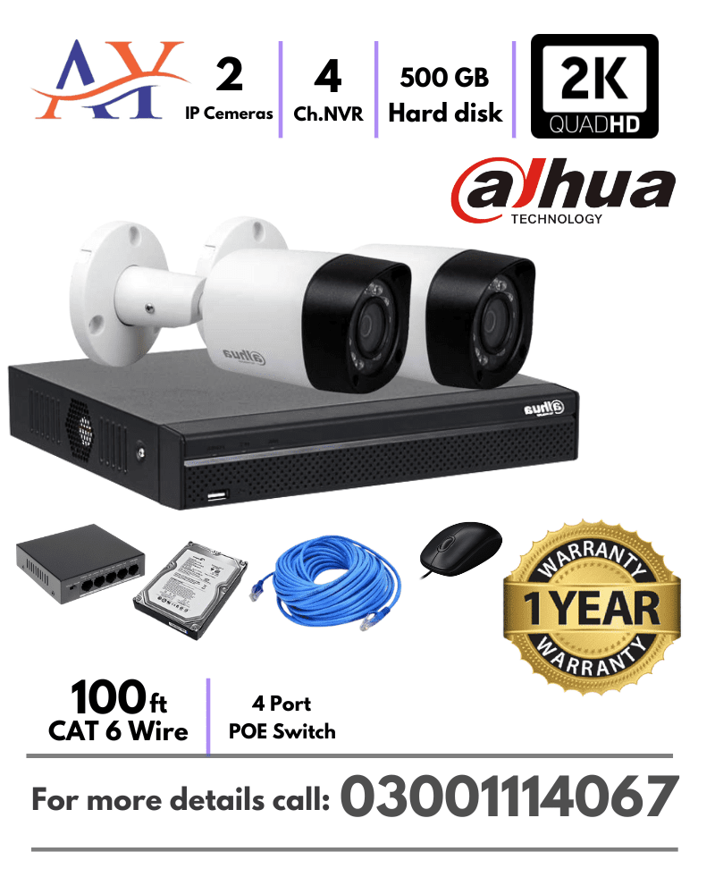 2 IP Cameras 4 Megapixel CCTV Camera Package Dahua