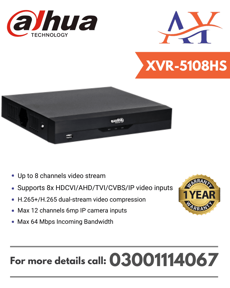 8 BNC ports, supports HDCVI/AHD/TVI/CVBS auto-detect