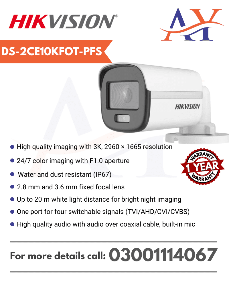 Min. Illumination: 0.001 Lux @ (F1.0, AGC ON), 0 Lux with white light